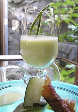 1. Corta el melón longitudialmente, quítale las pepitas y la piel. Lo cortas y reservas.